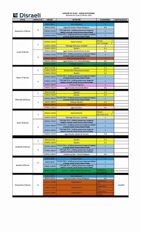 Horaire du 15 au 22 février 2026
